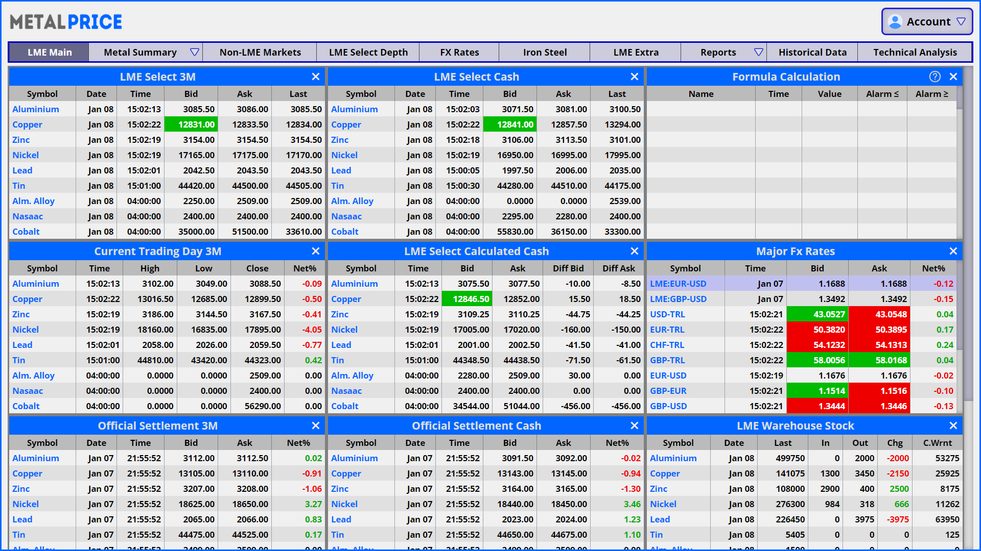 metalprice.live provides you with realtime or 30 minutes delayed London Metal Exchange quotations. With it’s simple, clear cut and easy to use web terminal and mobile application, you will reach LME coverage along with foreign exchange rates, minor metals, lme precious and LME Select anytime, anywhere without requiring any downloads or any setup.