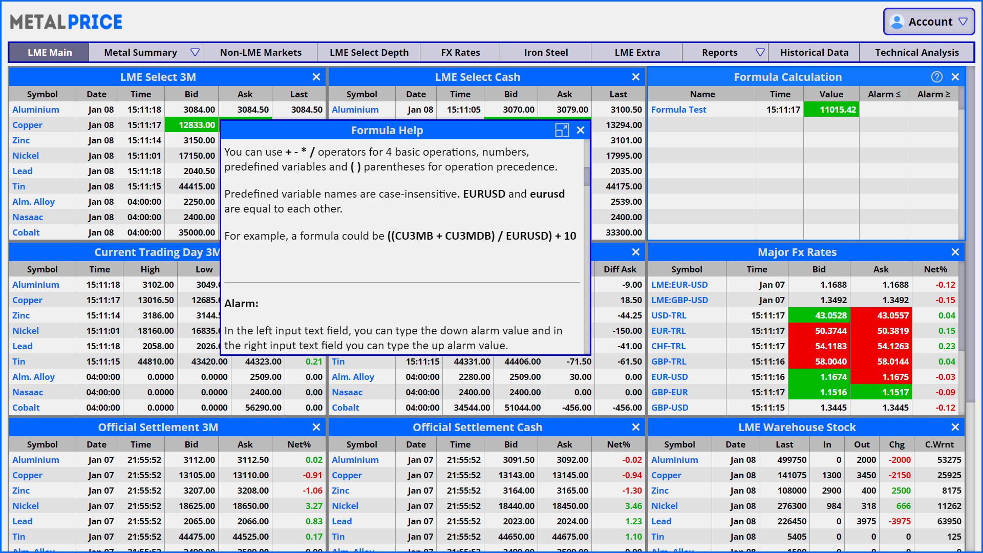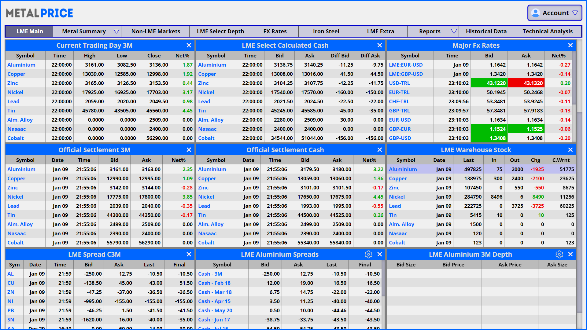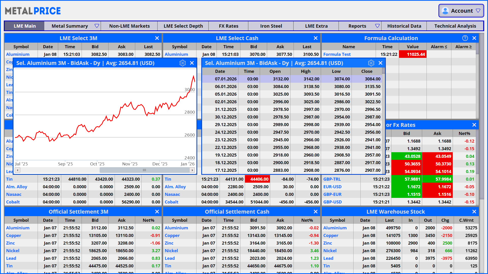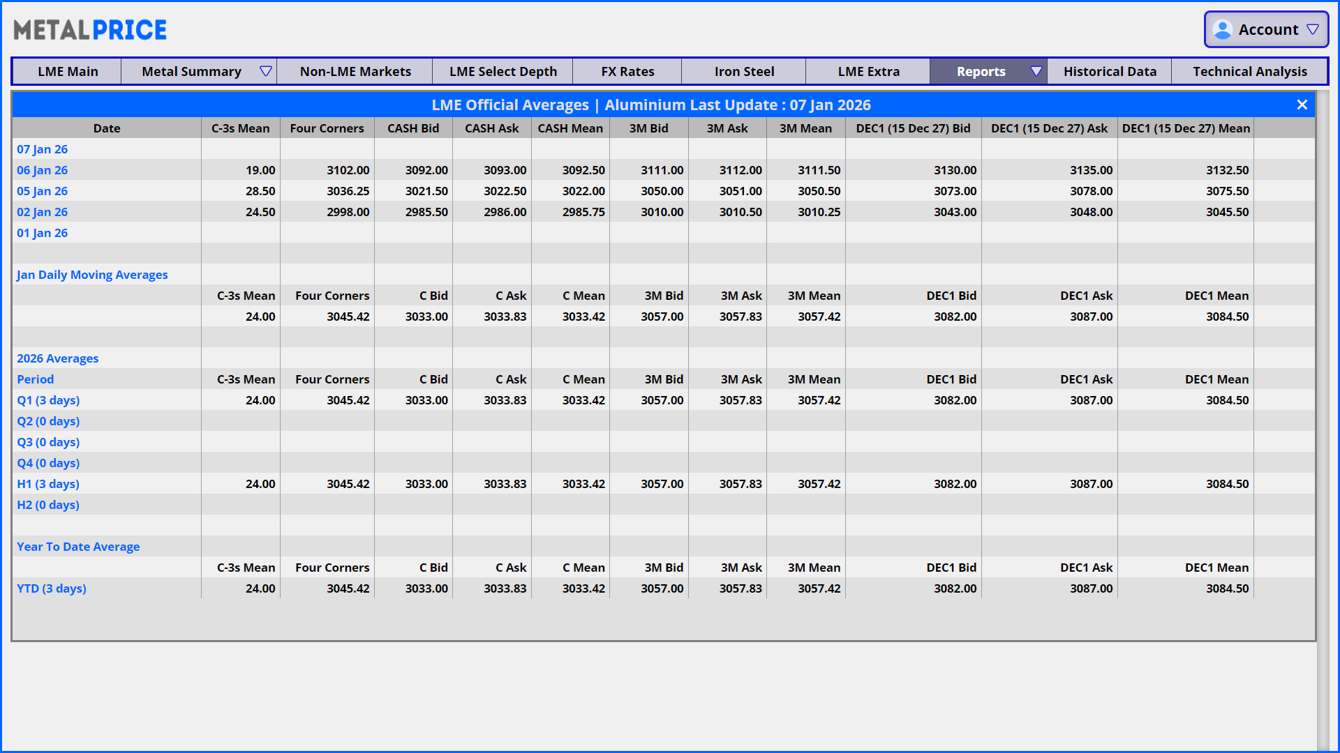 metalprice.live offers you all the reports published by London Metal Exchange. Provisional and final evening evaluations, LME averages, futures and options volumes and open interest reports, contributed volatilies and strikes will help you to get the best out of your business.