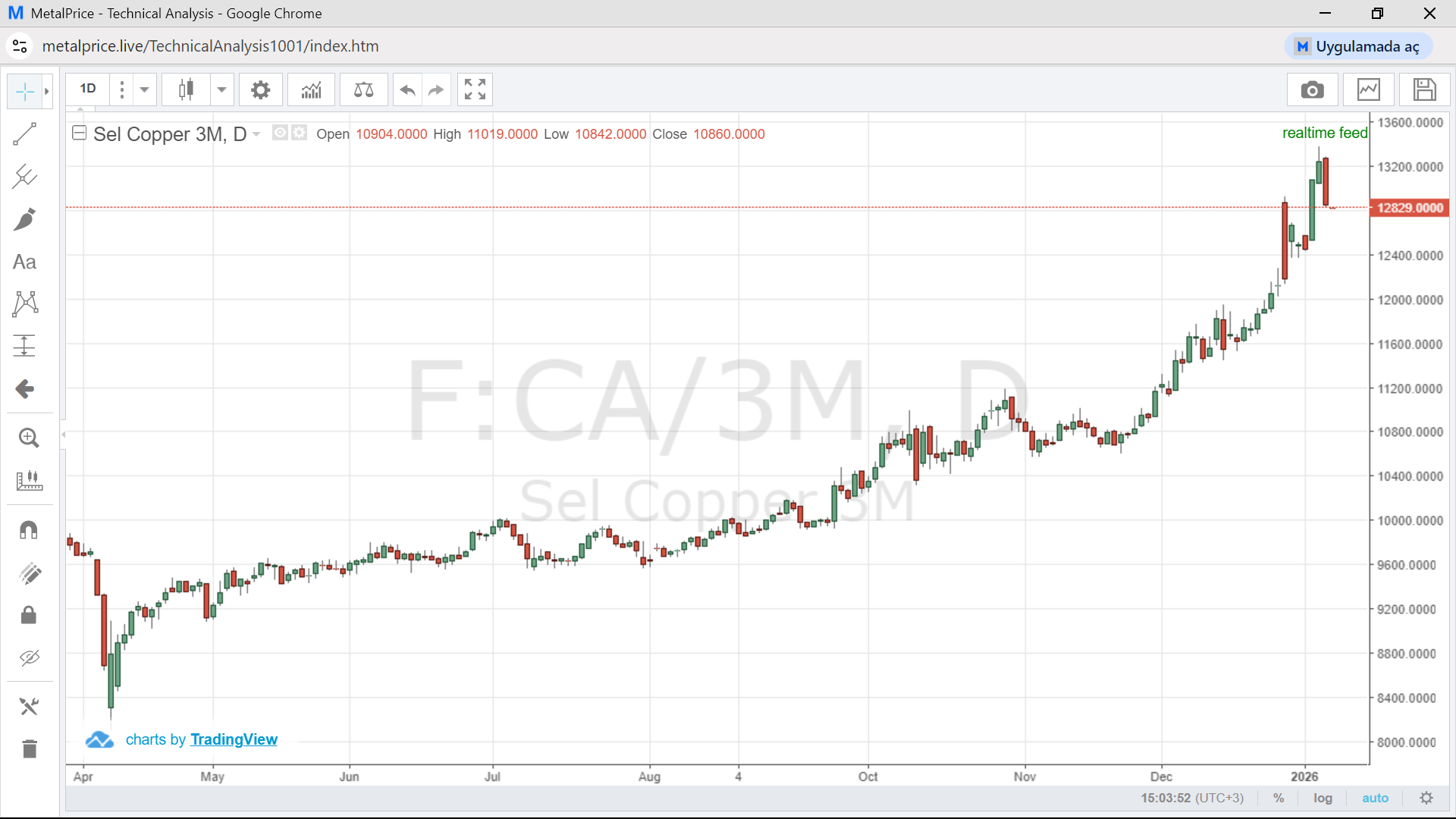metalprice.live provides a sophisticated charting tool, with different bar styles, colouring options and many technical indicators. You can customize your chart, add notes, use different time frames and take instant snapshots so that you are ready to use it in you internal reports.